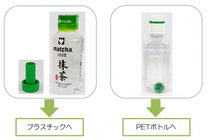 ペットボトルの中の緑色のプラスチックは、取り出さず、そのままリサイクルに出してください。