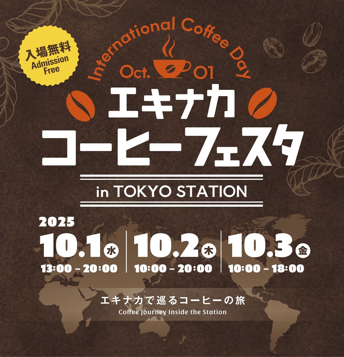 10月1日「国際コーヒーの日」に合わせて「COFFEE LOVER’S(コーヒーを愛する人々)」をテーマにコーヒー好きが広く集い、コーヒーの魅力を発信するイベント『「エキナカコーヒーフェスタ」 in TOKYO STATION 』(JR東日本東京駅)を、2025年10月1日(水)から10月3日(金)までの3日間で開催します。「タリーズコーヒー」で使用するエスプレッソマシンを使用したバリスタ体験(有償)をはじめ、会場限定のコーヒースクールやコーヒーの産地別試飲体験、新幹線車内販売コーヒーのご案内、持続可能なコーヒー農業の情報の発信などコーヒー尽くしの3日間です。