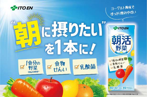 朝に摂りたい野菜・食物繊維・乳酸菌を、1本で手軽に摂取できる“朝専用”の野菜飲料です。