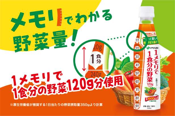 割って楽しく!料理にも!メモリではかって野菜量 がひと目で分かる人参ベースの希釈野菜飲料です。
